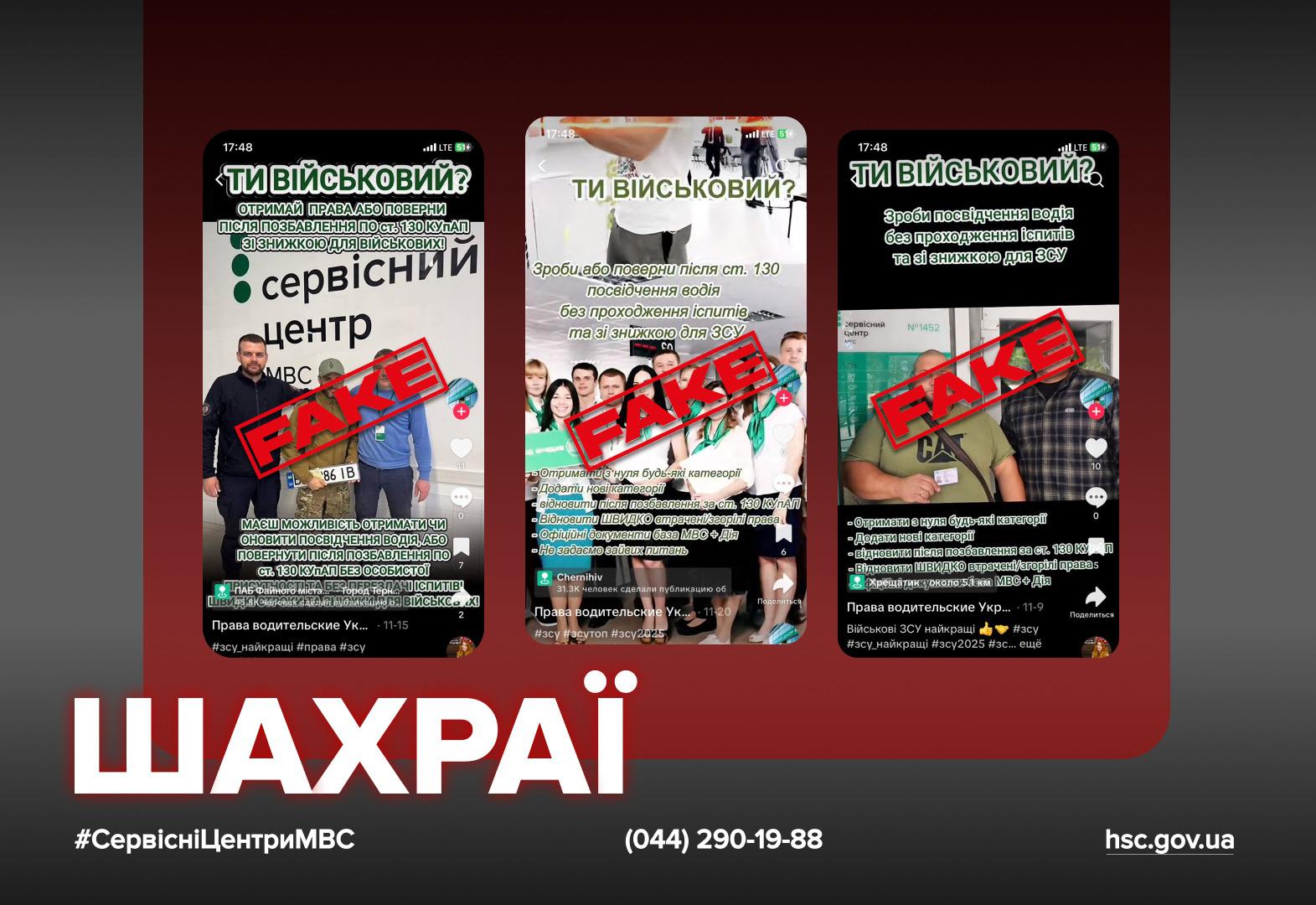 Шахраї маніпулюють військовими та використовують їхні фото для реклами фейкових послуг із виготовлення нібито справжнього посвідчення водія. Такі оголошення зловмисники публікують на платформі TikTok, де вони масово поширюються серед користувачів. Головний сервісний центр МВС та Департамент кіберполіції Національної поліції України пояснюють: головна мета таких публікацій – виманити гроші та персональні дані. Як розпізнати аферу та не стати жертвою шахраїв в інтернеті – далі у матеріалі.