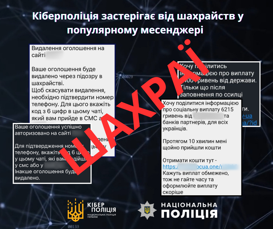 Злочинці зламують облікові записи користувачів месенджера та розсилають контактам жертв повідомлення з фішинговими посиланнями про нібито отримання грошової допомоги від держави або міжнародних орг...