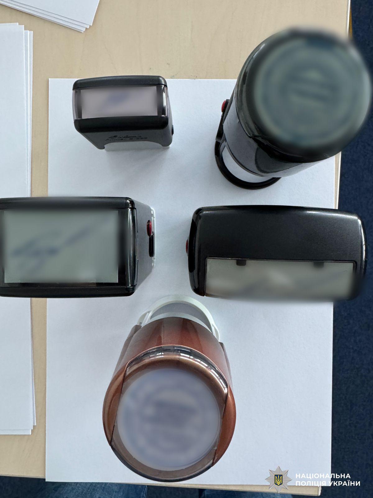 Під час обшуків правоохоронці вилучили документацію, комп’ютерну техніку, мобільні телефони, печатки-кліше та чорнові записи.